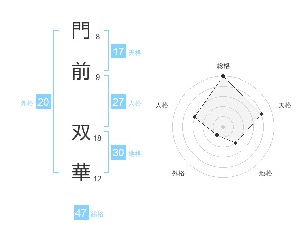門前 双華さんの総格は47画の5点!