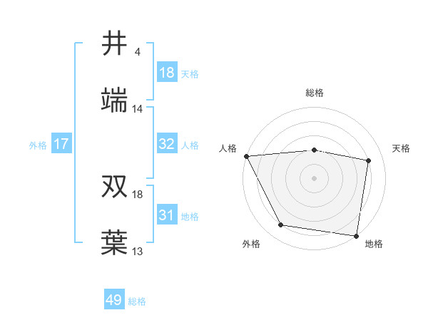 井端 双葉さんを姓名の画数から五運を鑑定