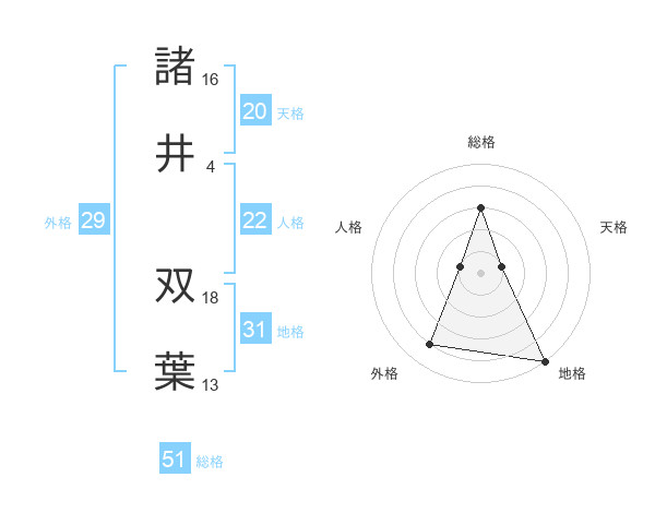 諸井 双葉さんを姓名の画数から五運を鑑定