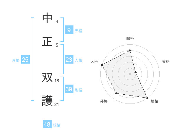 中正 双護さんの総格は48画の4点!