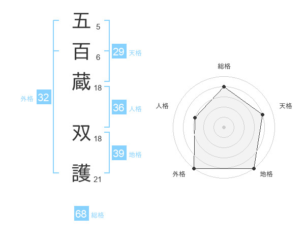 五百蔵 双護さんの外格は32画の5点!