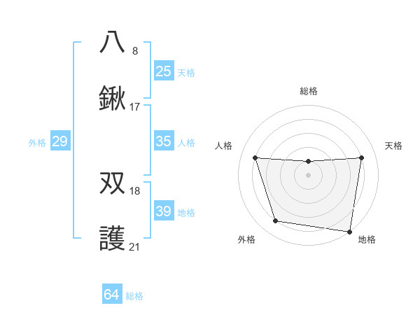 八鍬 双護さんを姓名の画数から五運を鑑定