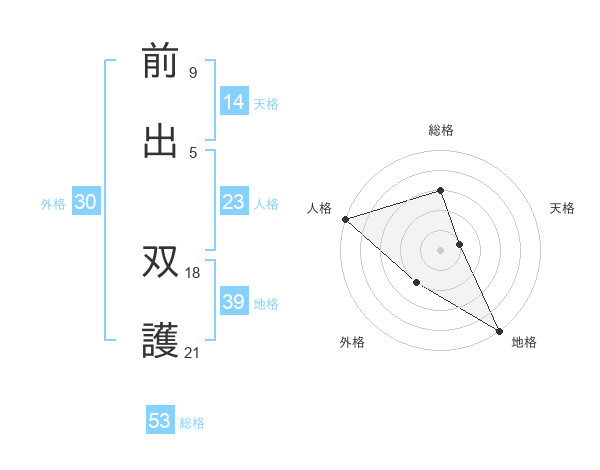 前出 双護さんの総格は53画の3点!