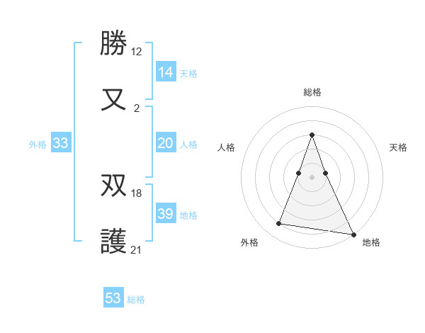 勝又 双護さんの総格は53画の3点!