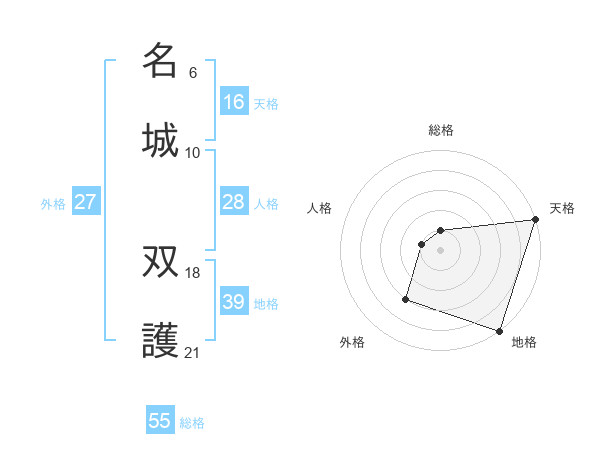 名城 双護さんの天格は16画の5点!
