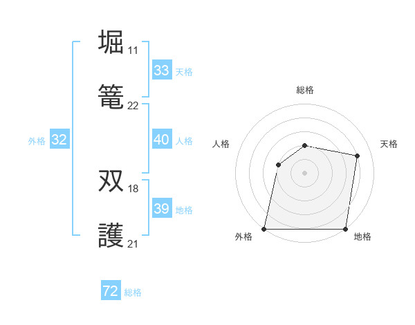 堀篭 双護さんの外格は32画の5点!