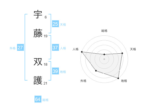 宇藤 双護さんの総格は64画の1点!