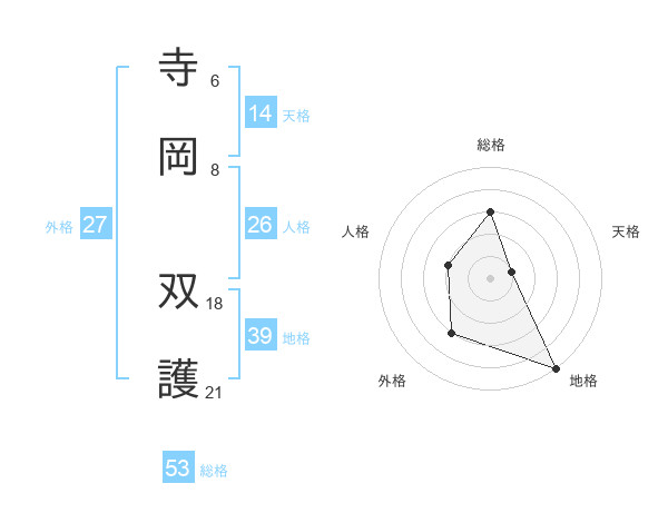 寺岡 双護さんを姓名の画数から五運を鑑定
