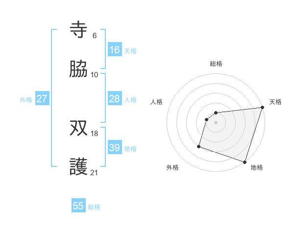 寺脇 双護さんの総格は55画の1点!