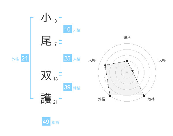 小尾 双護さんの総格は49画の2点!