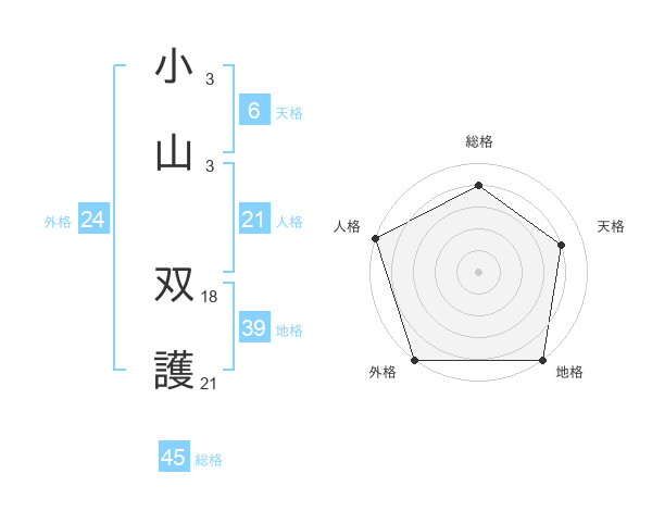 小山 双護さんの総格は45画の4点!
