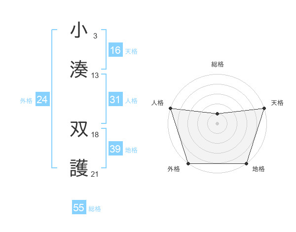 小湊 双護さんの総格は55画の1点!
