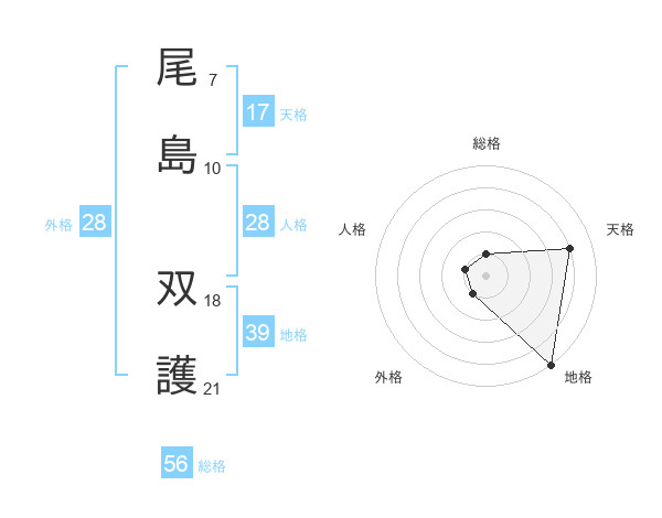 尾島 双護さんの総格は56画の1点!