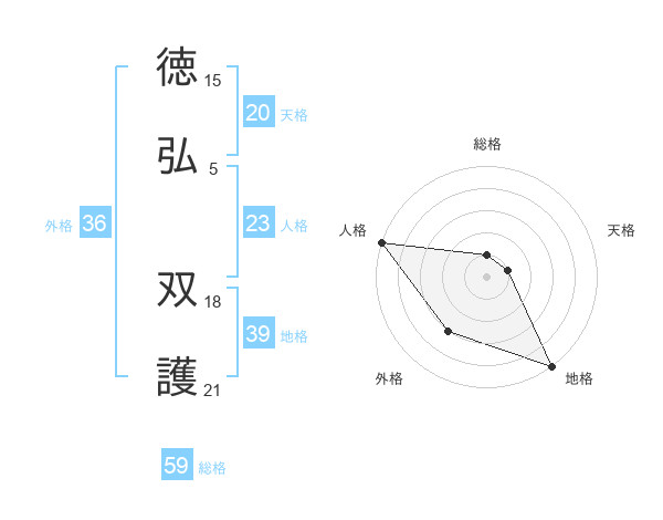 徳弘 双護さんの地格は39画の5点!