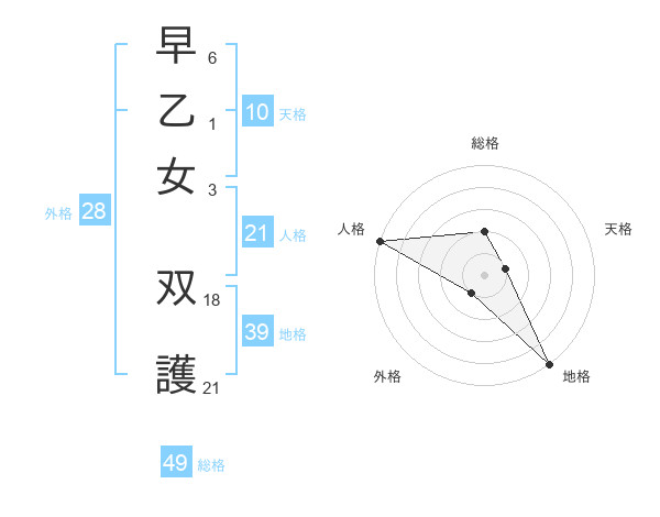 早乙女 双護さんを姓名の画数から五運を鑑定