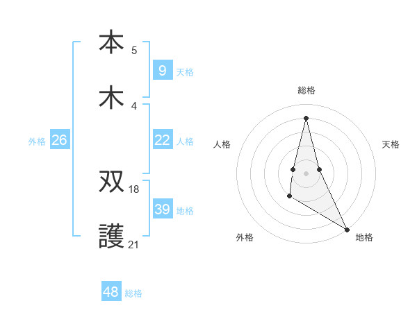 本木 双護さんの総格は48画の4点!