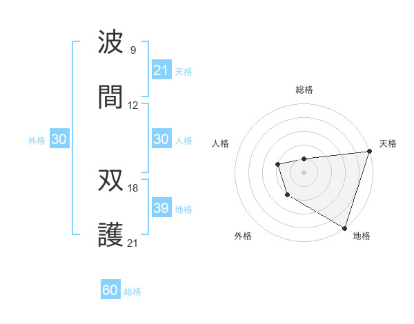 波間 双護さんの天格は21画の5点!