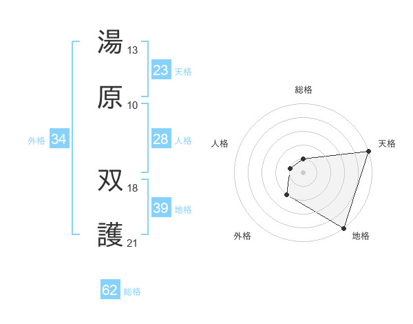 湯原 双護さんの総格は62画の1点!