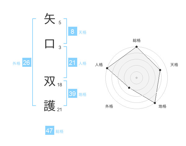 矢口 双護さんの総格は47画の5点!