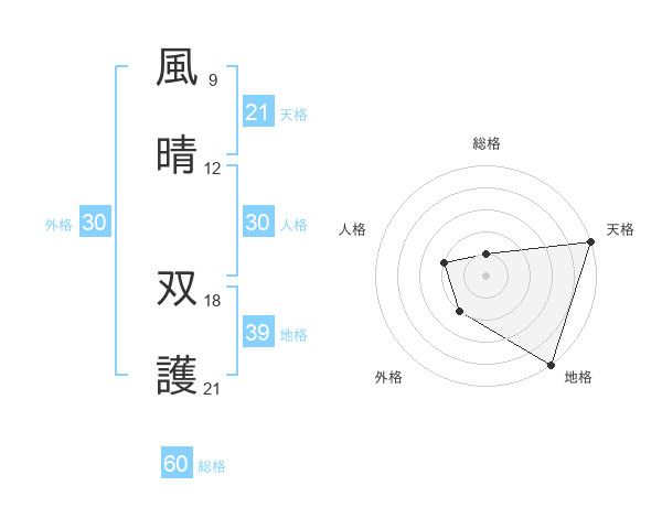 風晴 双護さんの外格は30画の2点!