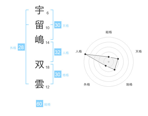 宇留嶋 双雲さんの総格は60画の1点!