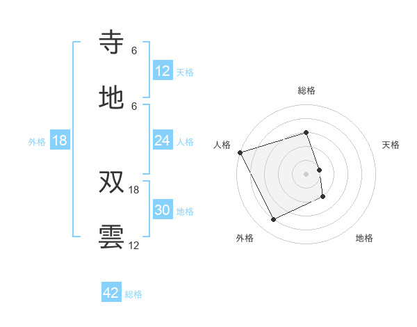 寺地 双雲さんを姓名の画数から五運を鑑定