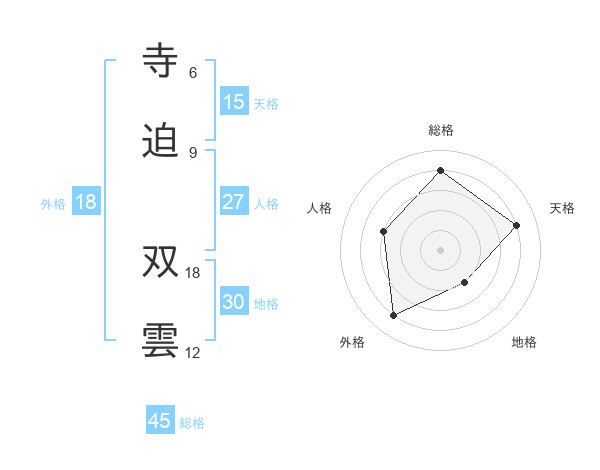 寺迫 双雲さんの総格は45画の4点!