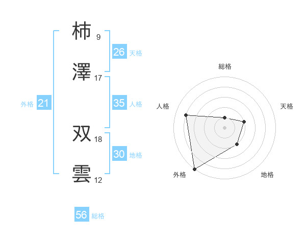 柿澤 双雲さんを姓名の画数から五運を鑑定