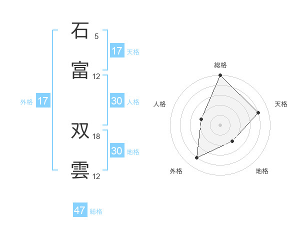 石富 双雲さんの総格は47画の5点!