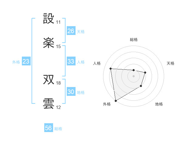 設楽 双雲さんを姓名の画数から五運を鑑定