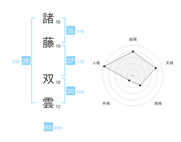 諸藤 双雲さんの総格は65画の4点!