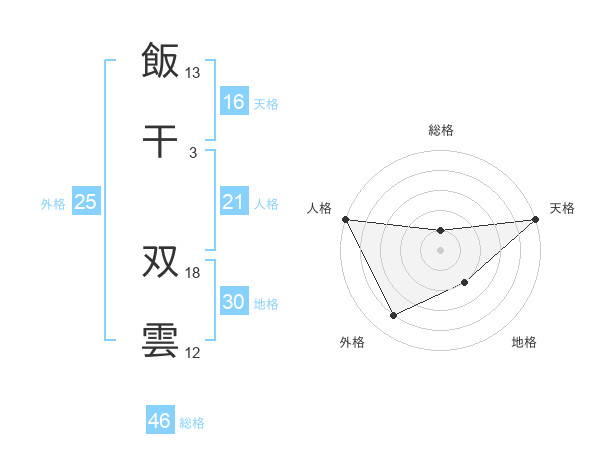 飯干 双雲さんを姓名の画数から五運を鑑定