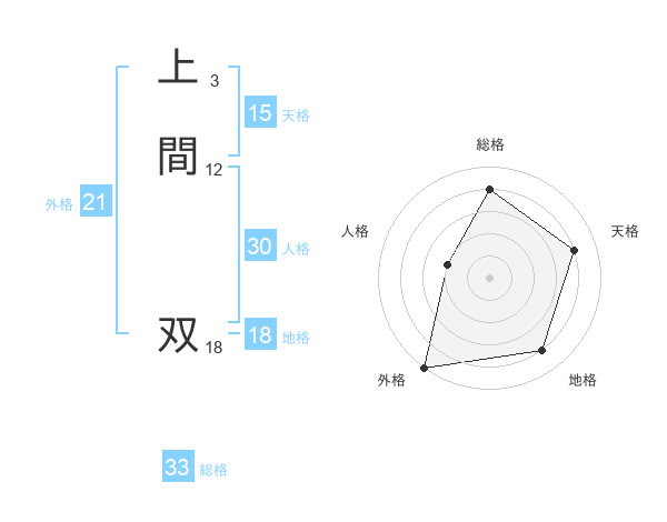 上間 双さんの外格は21画の5点!