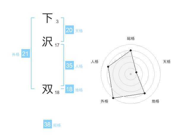 下沢 双さんの総格は38画の4点!