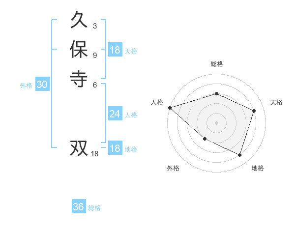 久保寺 双さんの総格は36画の3点!