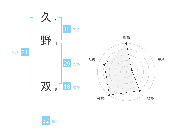 久野 双さんの地格は18画の4点!