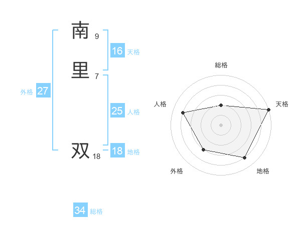 南里 双さんの天格は16画の5点!
