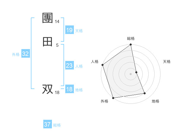 團田 双さんの外格は32画の5点!