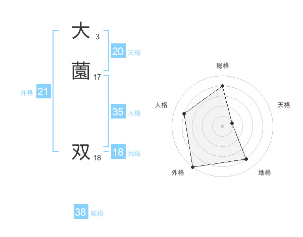 大薗 双さんの天格は20画の1点!