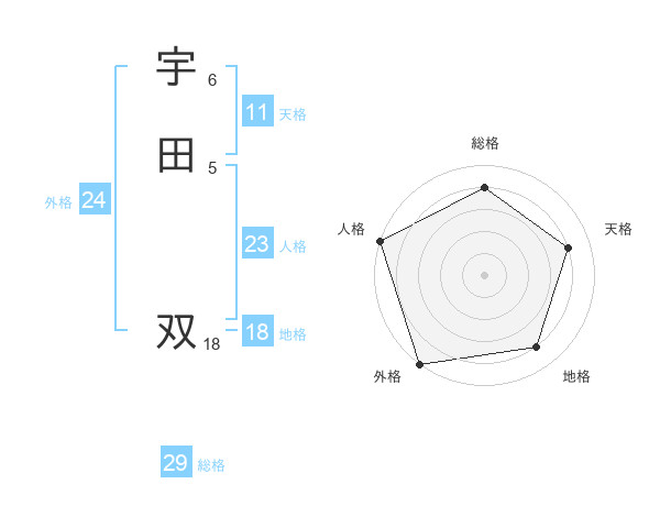 宇田 双さんの総格は29画の4点!