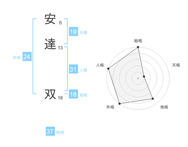 安達 双さんの人格は31画の5点!