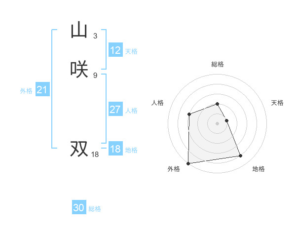 山咲 双さんの外格は21画の5点!