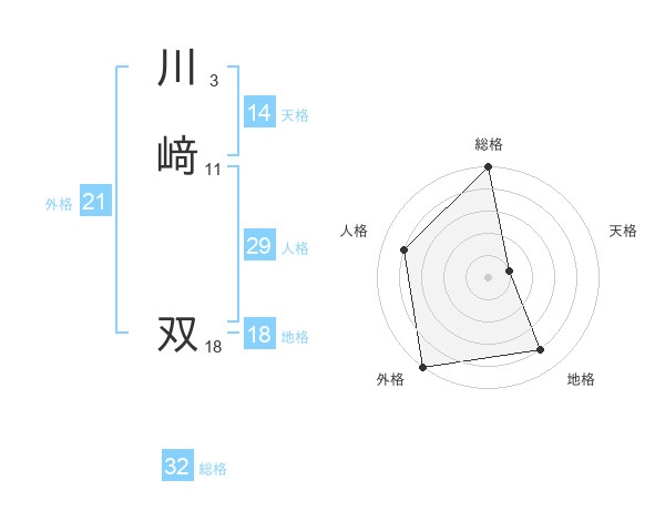 川﨑 双さんの外格は21画の5点!