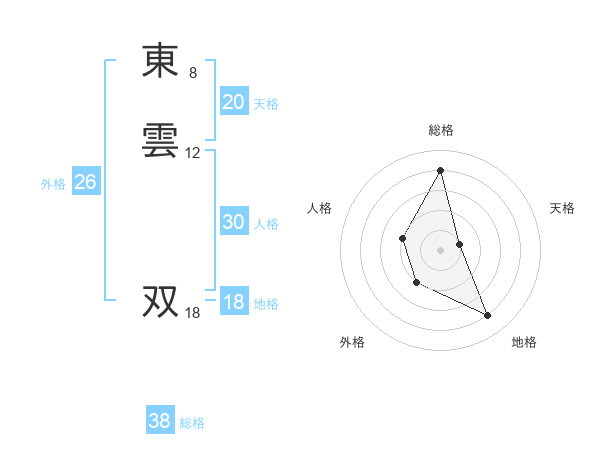 東雲 双さんの天格は20画の1点!