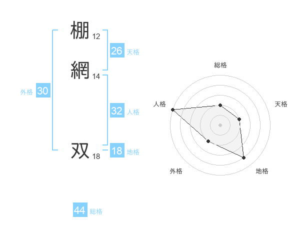 棚網 双さんの総格は44画の2点!