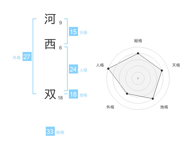 河西 双さんの天格は15画の4点!