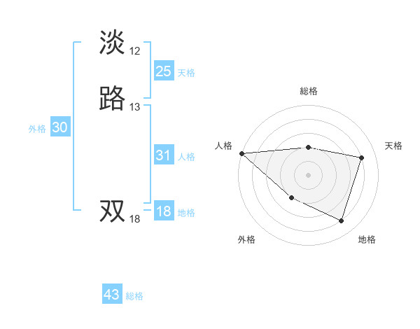 淡路 双さんの総格は43画の2点!