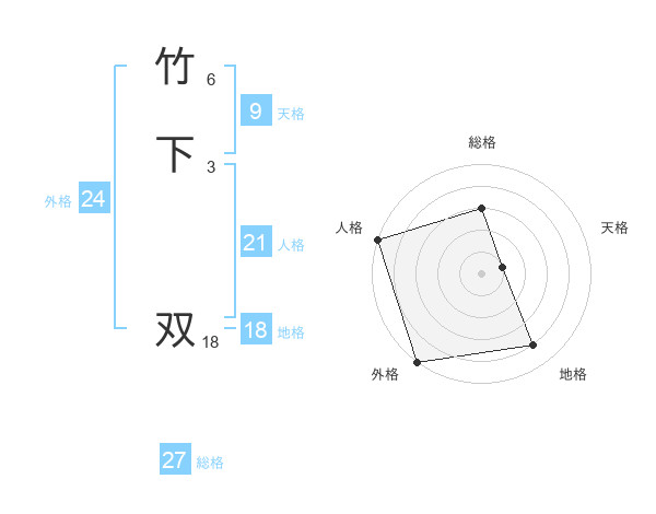 竹下 双さんの外格は24画の5点!