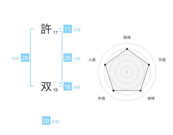 許 双さんの総格は29画の4点!