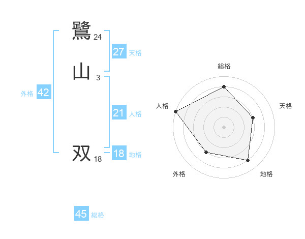 鷺山 双さんの総格は45画の4点!